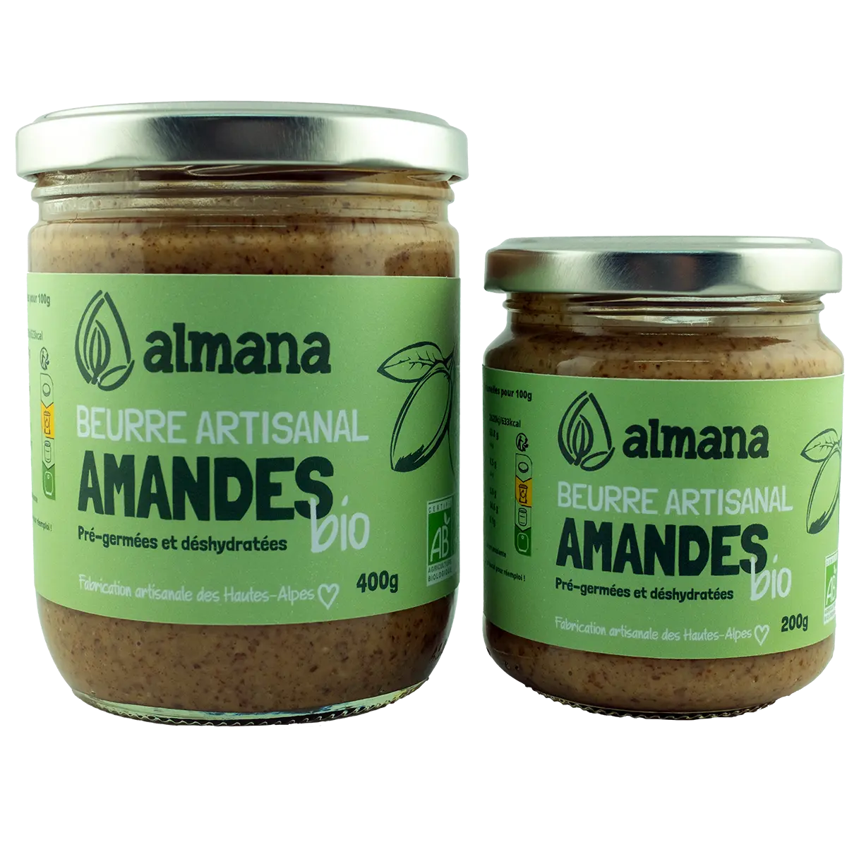Découvrez notre beurre d’amandes bio, 100% naturel, fabriqué avec soin dans les Hautes-Alpes, à Serres. Chaque pot renferme la richesse des amandes soigneusement sélectionnées, sans aucun ajout, pour préserver leur pureté et leurs bienfaits naturels. Élaboré de manière artisanale, ce beurre d’amandes offre une texture onctueuse et un goût authentique qui sublimeront vos recettes sucrées comme salées. Un produit d’exception, né du terroir alpin, pour une expérience gourmande et saine.